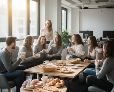 Mėgaukitės skanėstais ir dalinkitės atviru pokalbiu su kolegomis. Net ir maži dalykai ilgalaikėje perspektyvoje kuria didelį efektą!